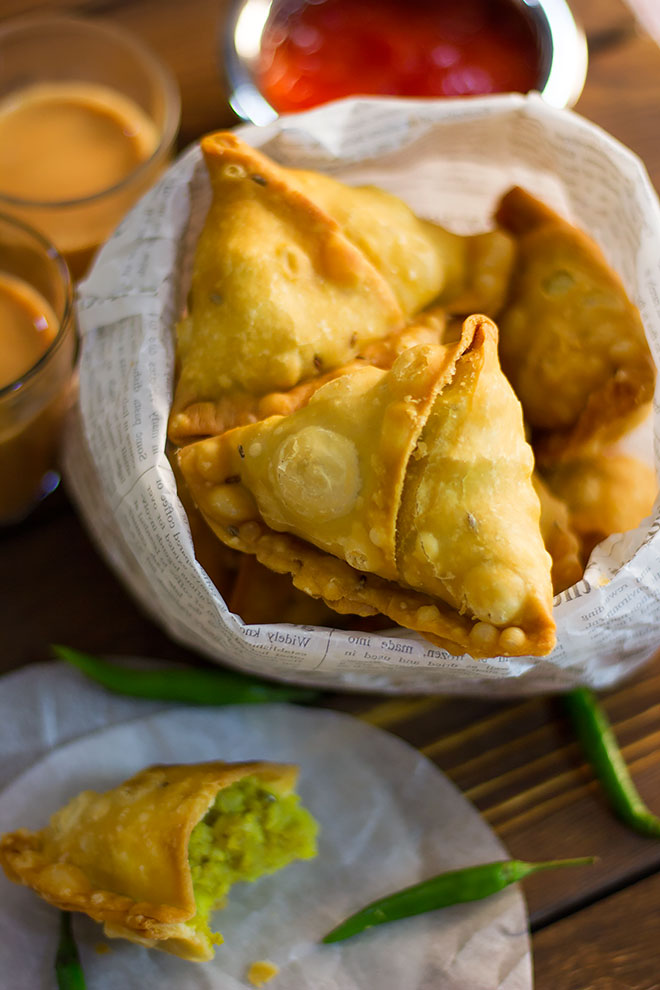 La Samosa non è altro che un antipasto indiano considerato un tipico street-food poiché può essere facilmente gustato con le mani e come un cibo da strada. Si tratta di un fagottino triangolare, spesso a forma di mezzaluna costituti da una base di pasta di farina detta maida, spesso sostituita da pasta fillo, fritto o cotto al forno e imbottito da un gustoso ripieno speziato: tradizionalmente compaiono patate, piselli e cipolle ma sovente è presente anche pollo e formaggio.